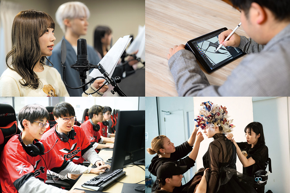 全日制の専門スクールをはじめ、高等部※1、大学部※2、社会人向けのキャリアカレッジを展開し、さまざまな分野において多くのクリエイター育成に注力しています。