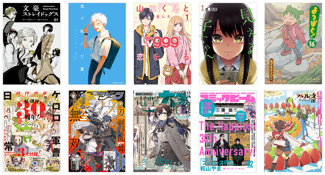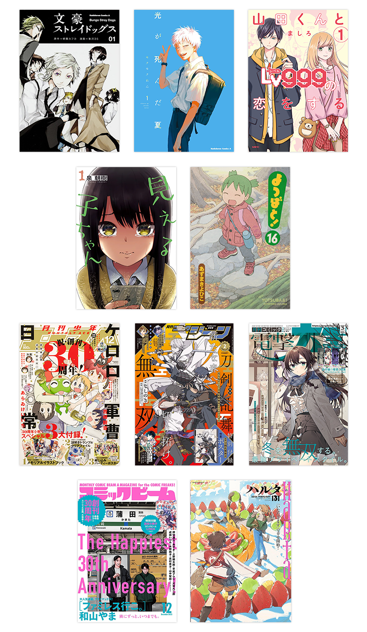 「常に時代のニーズを先取りする」をテーマに、世の中の動きに敏感な層に向けた作品を数多く展開し、各種のマンガ賞でも高い評価を受けています。近年では海外ファンに向けた多言語への翻訳作品、無料マンガ配信サイト「カドコミ」での電子先行作品なども増え、世界市場に向けた作品づくりも行っています。