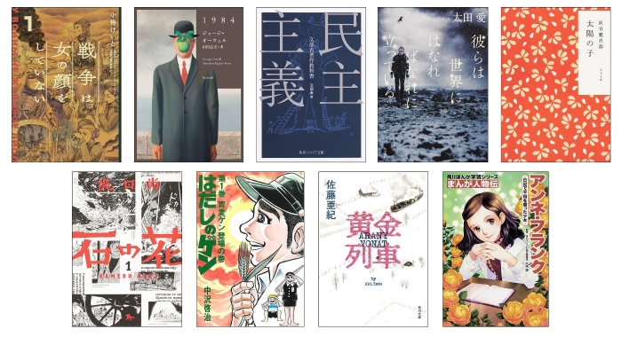 『石の花(KADOKAWA版) 1~5』(著:坂口尚)、『戦争は女の顔をしていない 1~3』(作画:小梅けいと/原作:スヴェトラーナ・アレクシエーヴィチ/監修:速水螺旋人)、『はだしのゲン 第1巻~第4巻』(著:中沢啓治)