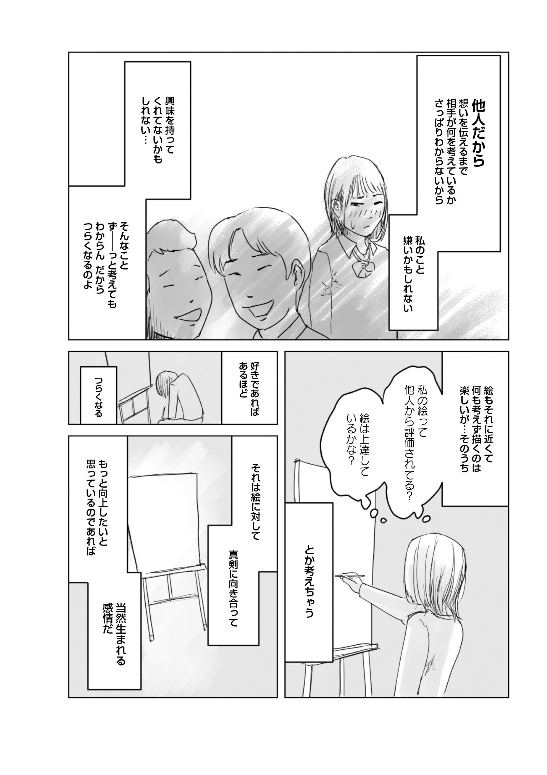 主に高校の美術部が舞台ですが他業種の方から、「これわかるなー」という声もたくさん届いていて、美術に関わる人以外の万人に届くような内容になるよう、担当の方はじめ多くの方々と作り上げた1冊です! この本が明日への一歩が踏み出せる何かのきっかけになればうれしいです。