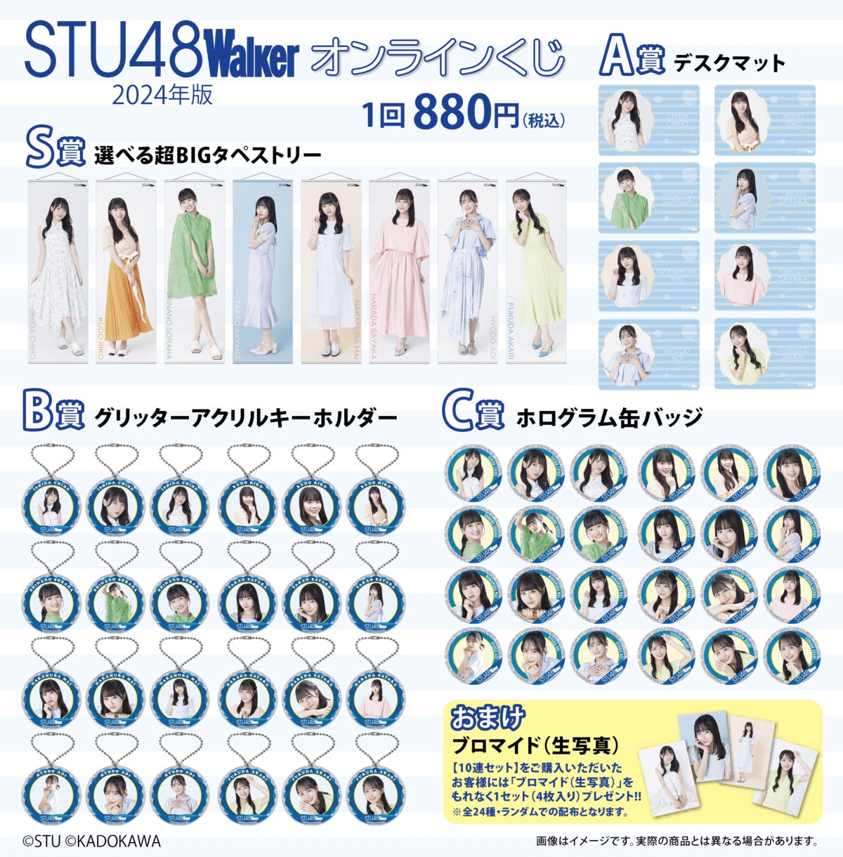 <STU48 Walker 2024年版 オンラインくじ 概要> 販売期間:2024年10月10日(木)12:00~2024年11月7日(木)11:59 販売価格:1回 880円(税込)※別途発送手数料が掛かります。 |