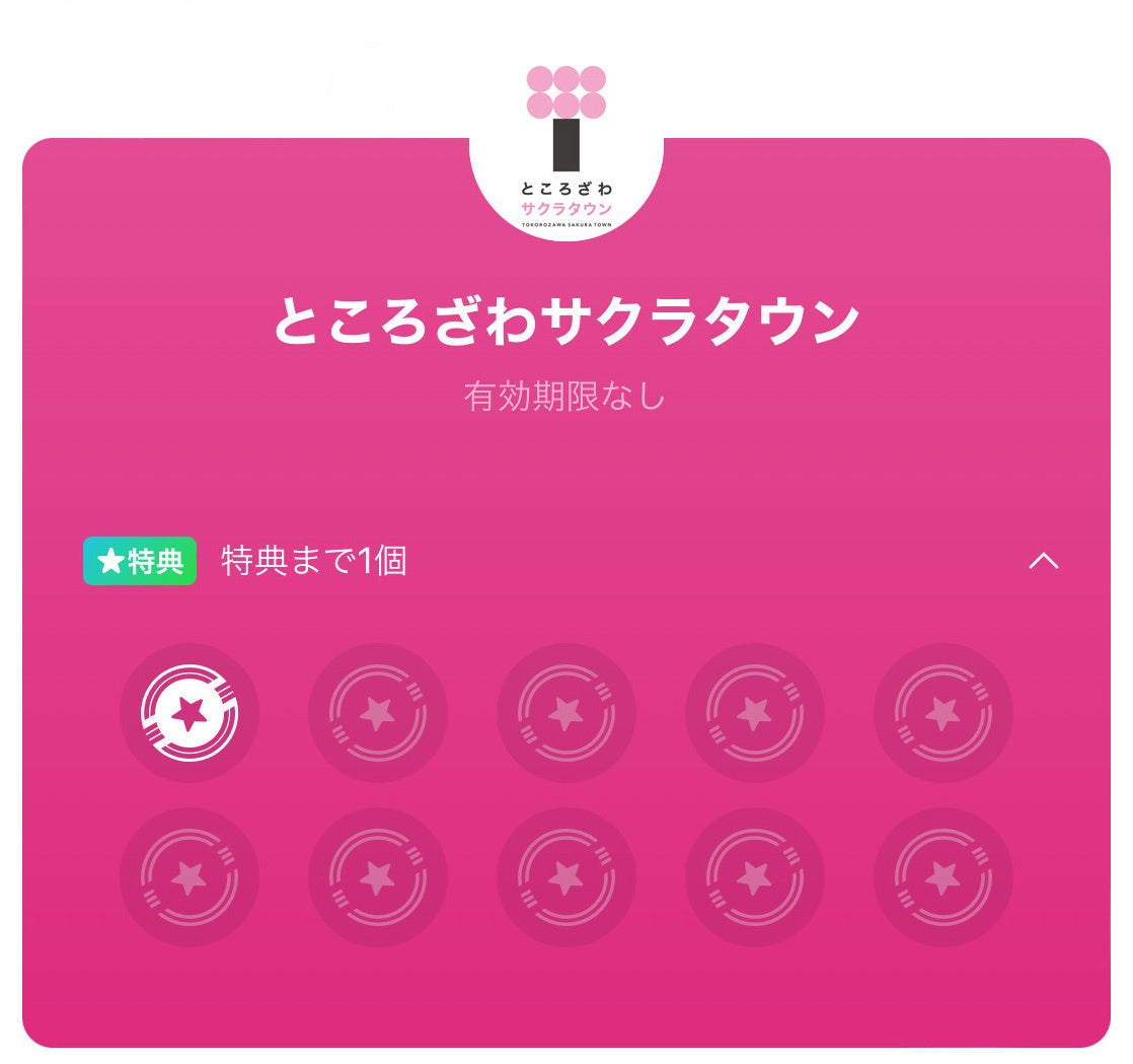 ①ところざわサクラタウン公式LINEアカウントを友だち登録 → メニュー左下の枠、車のイラストが描かれた「クーポン」を押してショップカードを取得