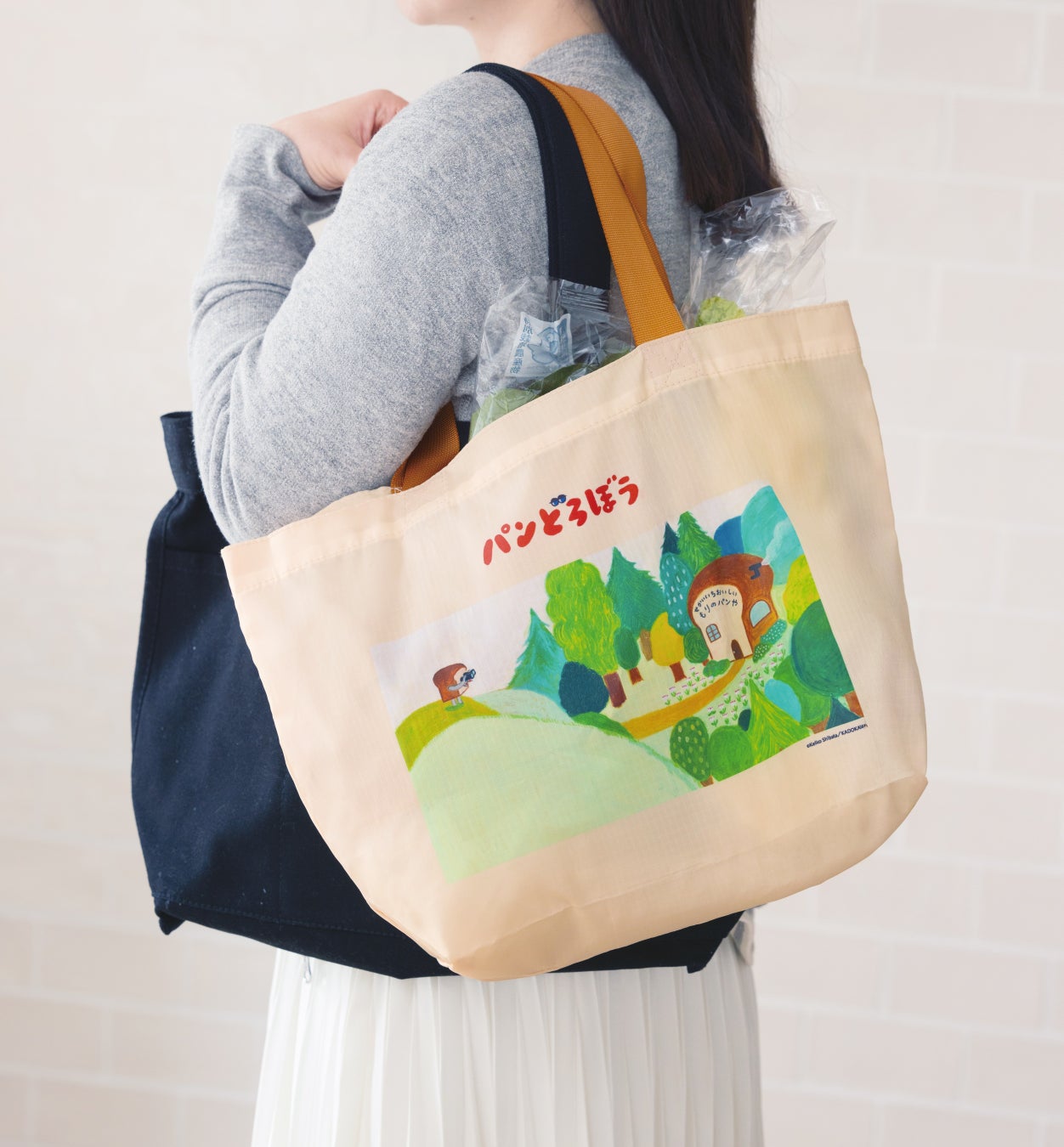 最大の特徴は、パンどろぼう形の内ポケットにバッグを畳んで収納すると、ふんわりしたかわいいパンどろぼうの姿になること!その姿は、まるでぬいぐるみのよう。いつものバッグに忍ばせておけば、使うときだけでなく、持ち運ぶときもかわいくて、お出かけが楽しくなります。