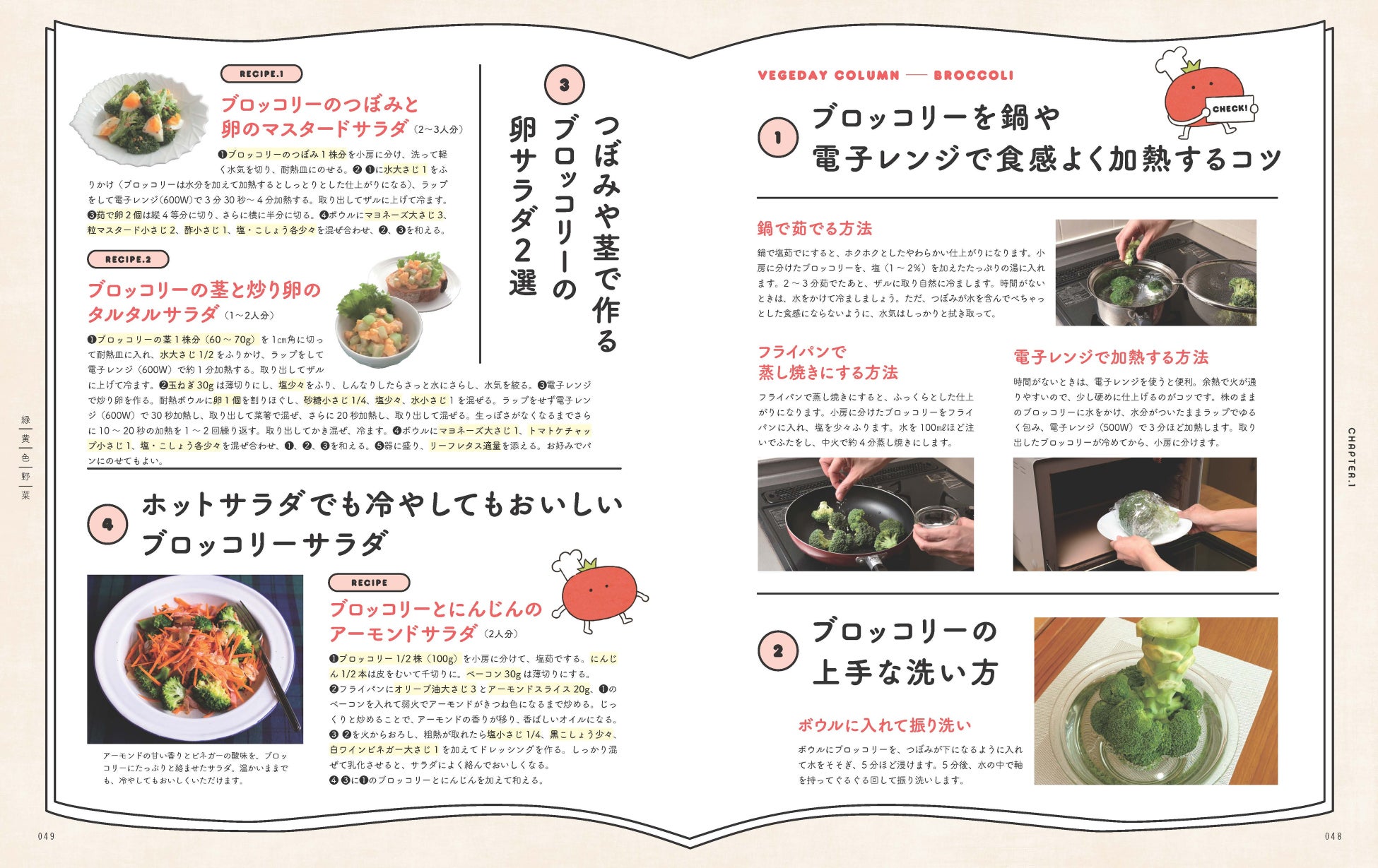 カゴメの管理栄養士さんが、日常的に食べている40種類の野菜を「緑黄色野菜」と「淡色野菜」にわけてじっくり紹介。野菜ごとの栄養価、食べ方のコツ、おすすめの調理方法、保存方法、レシピなどを網羅しています。知れば知るほど野菜が好きになり、毎日の食卓も整っていきそうです!
