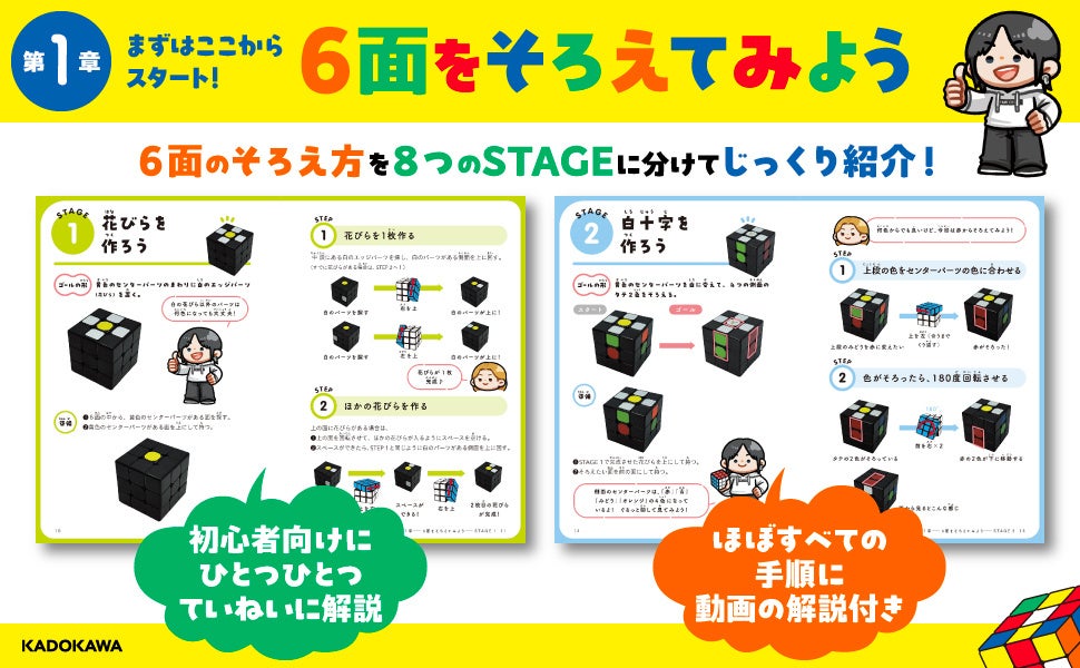 そんな思いを込めたキャッチコピーの通り、本書はつまずきに徹底的に寄り添い、初心者でも着実に6面完成へと導く、“圧倒的にわかりやすい”解説書です。