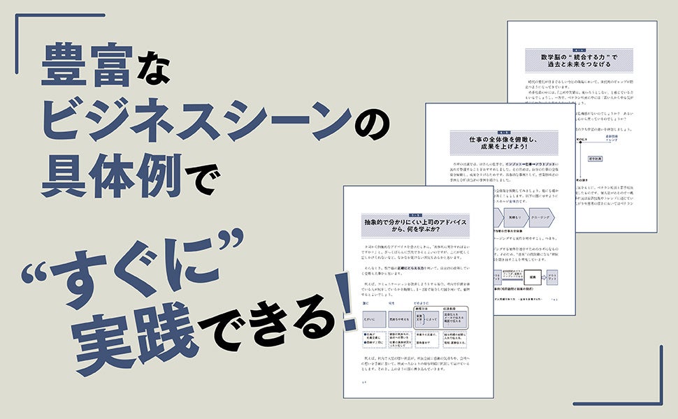 本書は、この「数学脳」を丁寧に解説し、リアリティが高いビジネスシーンを題材に「数学脳」の使い方、高め方を紹介しています。本書を読み終わった後、AIに仕事を奪われず、AIと共存し、ご自身のキャリアをクリエイティブに切り開けるスキルが身についていることでしょう。