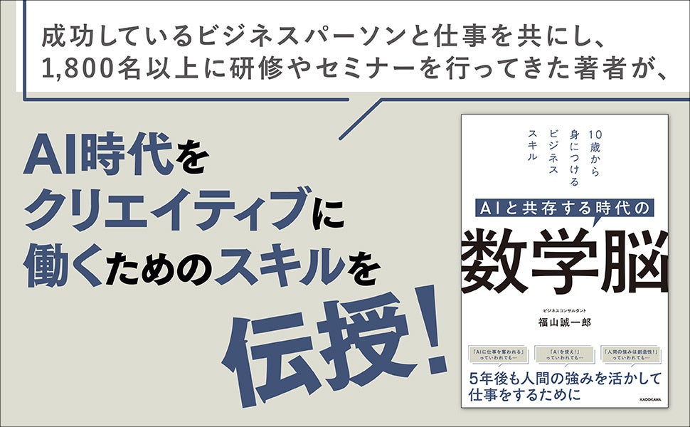 株式会社KADOKAWA(本社:東京都千代田区、取締役 代表執行役社長 CEO:夏野剛)は、『AIと共存する時代の 数学脳 10歳から身につけるビジネススキル』(著:福山誠一郎)を2025年5月2日(金)に発売します。
