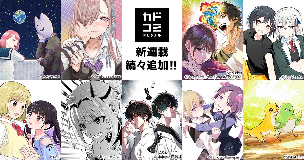 2024年5月に「カドコミアプリ」発のオリジナル漫画として誕生した「カドコミオリジナル」レーベル。現在、40を超える連載作品を「カドコミアプリ」にて初回無料で配信しています。