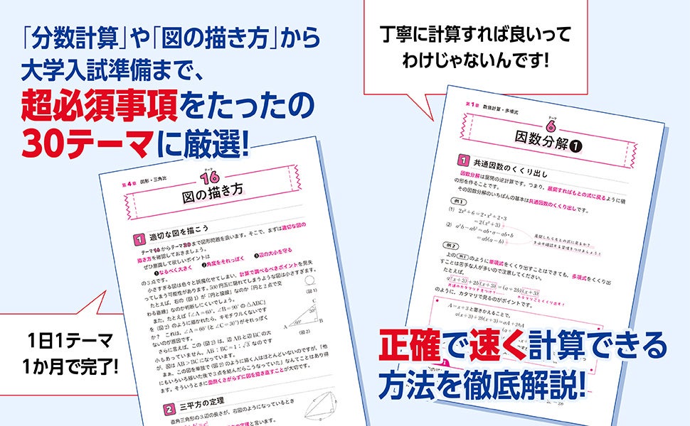 このように、本書は「数学ができるようになるための土台作りにピッタリの1冊」です。地盤が悪ければ大木は育ちません。一見遠回りに感じるかもしれない「基礎・基本」の習得ですが、正しくこれらを身につけることで、その後の勉強が驚くほどスムーズで効率的なものになることでしょう。