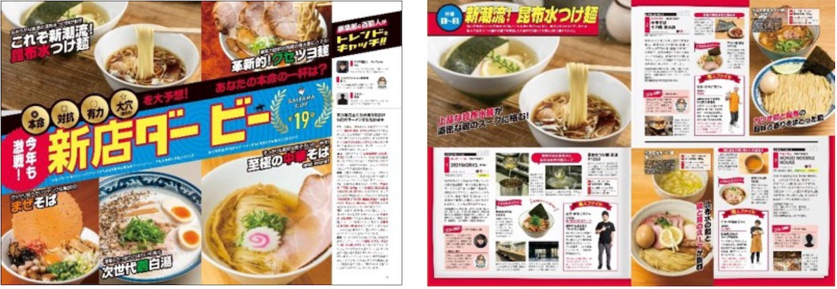 スペシャル特典をさらにパワーアップしました。毎年好評の限定麺企画にはカードサイズの「限定麺パス」を収録し、本誌を持参せずとも「限定麺パス」の提示で特製メニューをお楽しみいただくことができます。さらに、切り取ってポケットサイズに折りたためば、カバンやポケットに入れて持ち歩くことができる便利な「ラーメン店MAP」も特別収録しています。