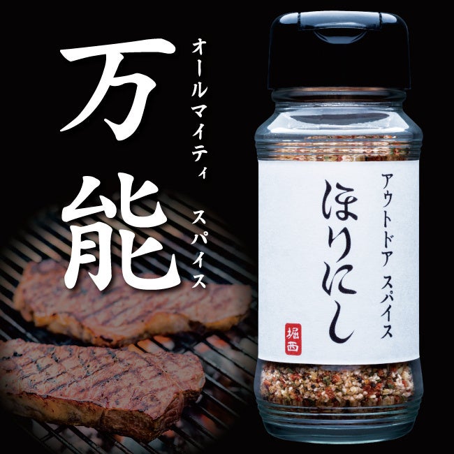 「アウトドアスパイス ほりにし」は、“これ1本で、味が決まる!” と評判の万能スパイス。和歌山県の「アウトドアショップ Orange」で当時店舗マネージャーを務めていた堀⻄晃弘が開発リーダーとしてプロジェクトを進め、20種以上のスパイス・調味料を独自配合。肉、魚、野菜など、どんな食材にも合う、まさに“魔法のような1本”として、アウトドア界隈から火がつき、今や家庭料理の必需品に。ひとふりで、料理に奥行きと旨みをプラスしてくれます。