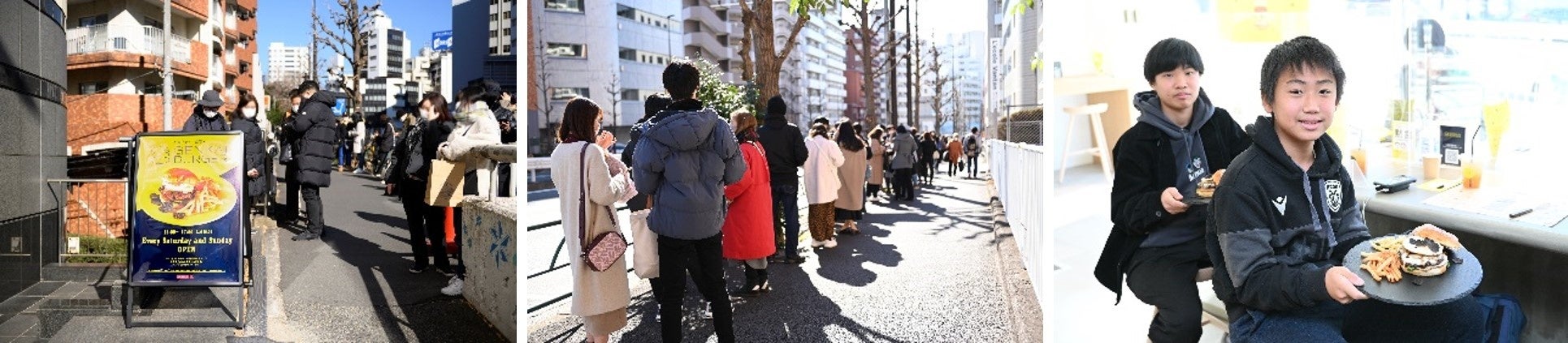 1月22日(土)、23日(日)は100名限定でハンバーガーセット(「神戸牛 “GENKAI” チーズバーガー」、ポテト、ソフトドリンク)を無料で提供。オープン前に100名以上が並ぶ結果となりました。
