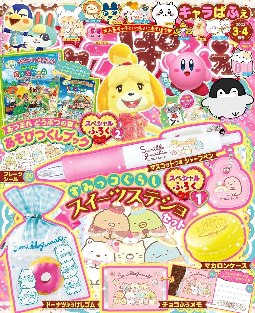 <付録は「すみっコぐらし」スイーツふうステーショナリー5点セットと、「あつまれ どうぶつの森」の小冊子! 誌面には「星のカービィ」など、話題のキャラクター情報もたっぷり特集>