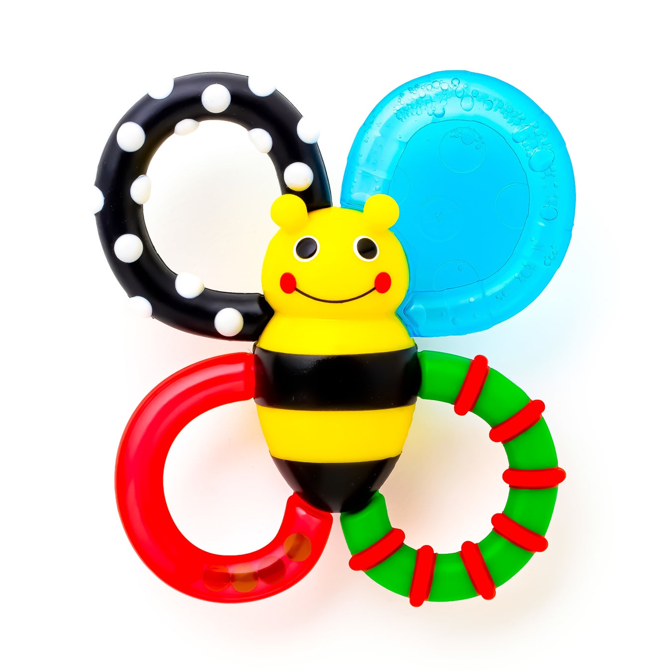 4種類の感触が楽しい、Sassyの人気No.1歯がため!赤ちゃんがはじめに注目する6色で作ったこだわりの限定カラー版だから、反応抜群。
