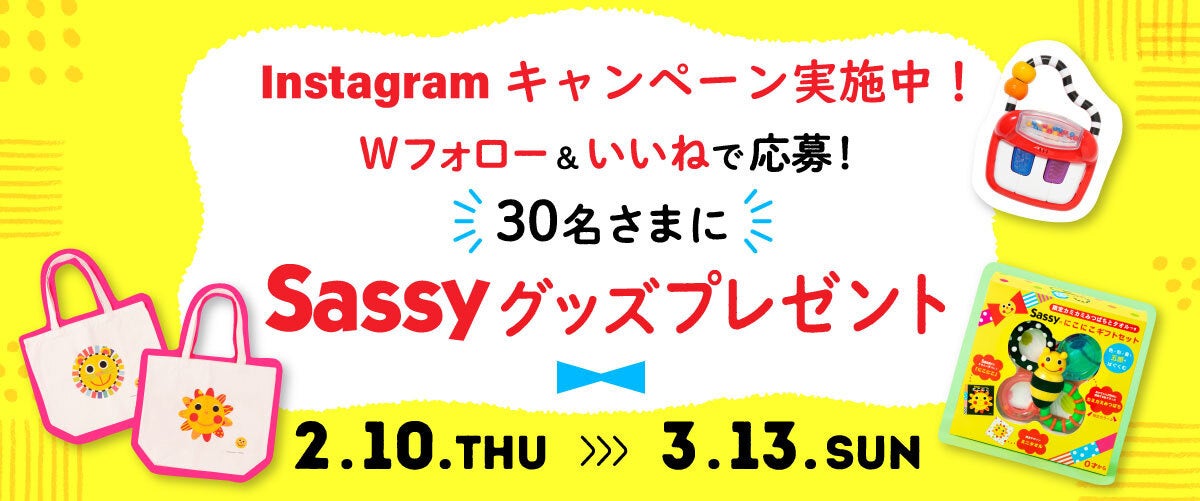 - ギフトセット発売記念!Sassyのグッズやおもちゃが当たるInstagramキャンペーンを実施