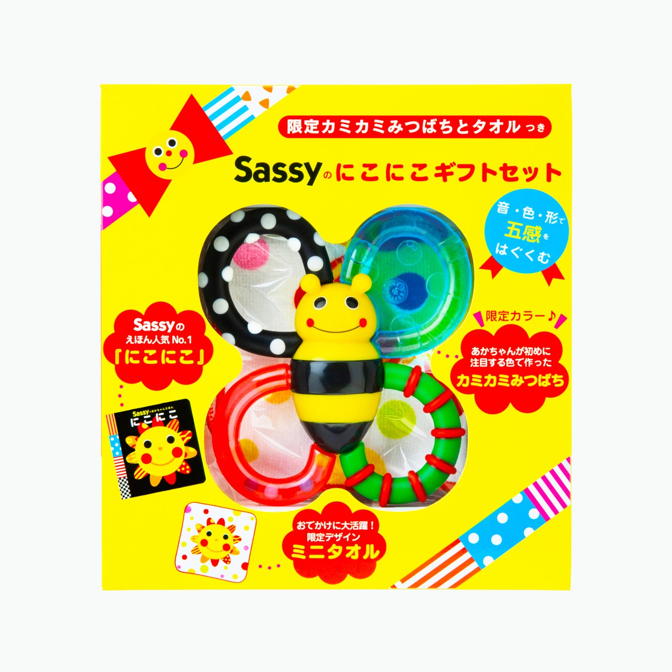 - 『【限定カミカミみつばちとタオルつき】Sassyのにこにこギフトセット』を新発売!