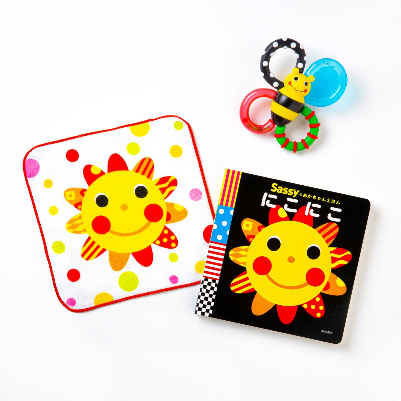 株式会社KADOKAWA(本社:東京都千代田区、 代表取締役社長:夏野 剛)は、赤ちゃんが夢中になる要素が詰め込まれたラトル「カミカミみつばち」の限定カラー版と絵本『Sassyのあかちゃんえほん にこにこ』、限定デザインのミニタオルを特製BOXに詰めた『【限定カミカミみつばちとタオルつき】Sassyのにこにこギフトセット』を2022年2月10日(木)に発売いたします。また、新刊発売を記念して、Sassyのママグッズやおもちゃが当たるInstagramキャンペーンを実施いたします。