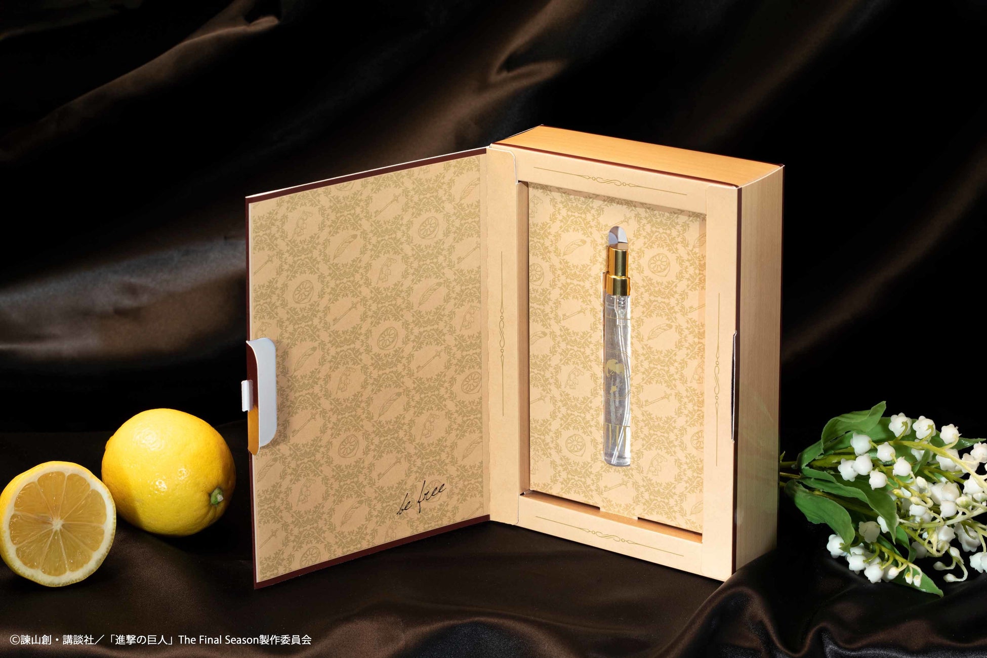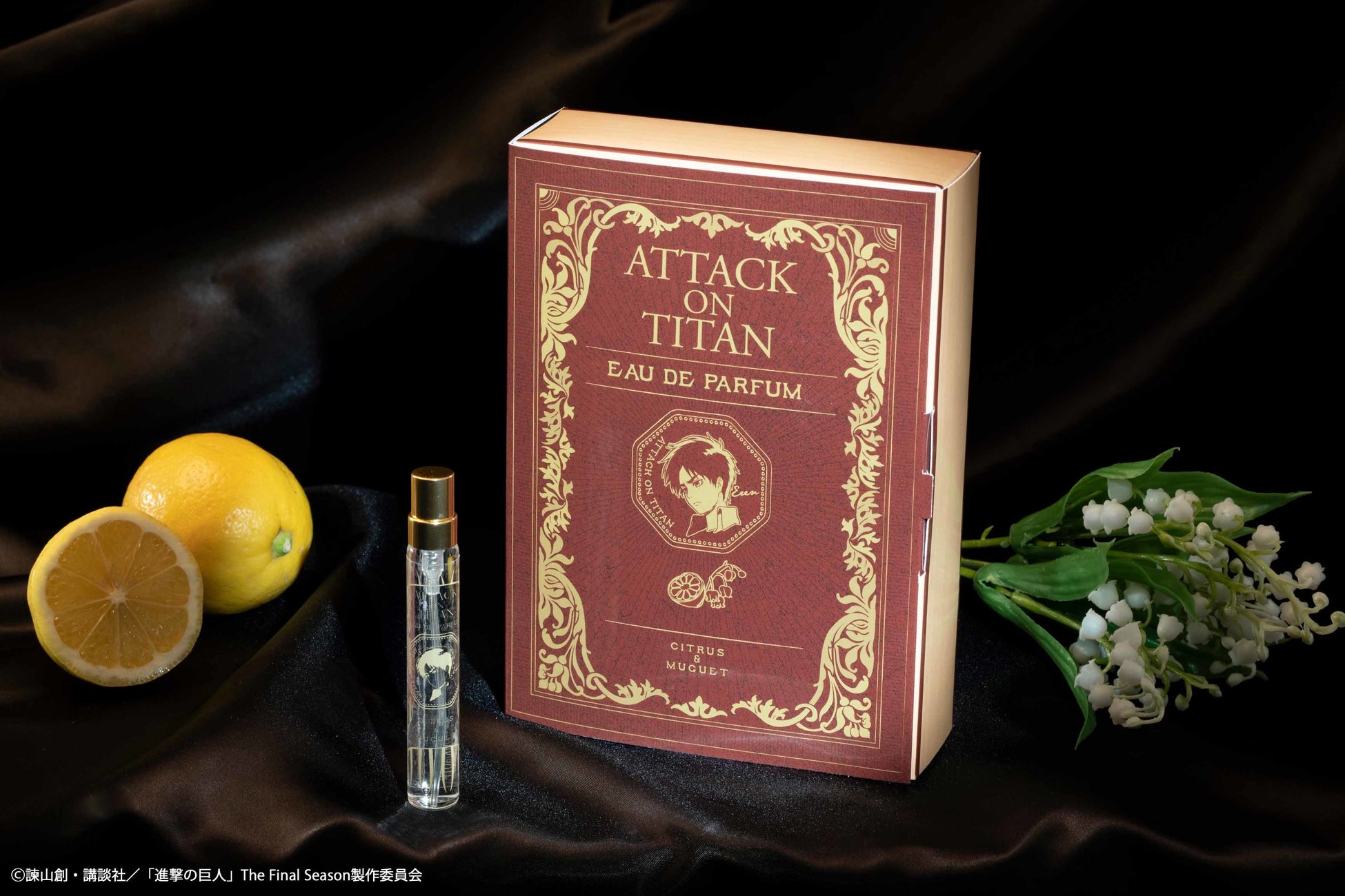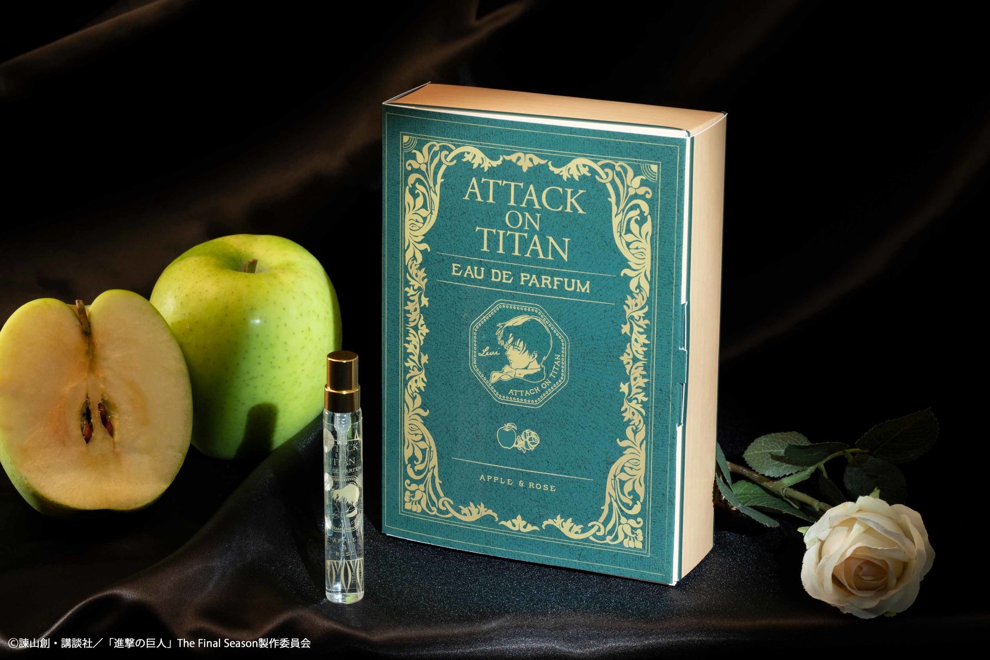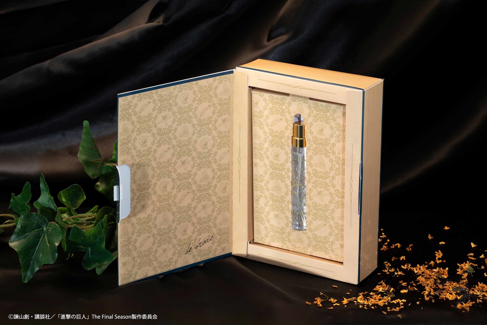 エレン・リヴァイ・エルヴィンをイメージした花やフルーツ素材を使用したオードパルファムが登場。