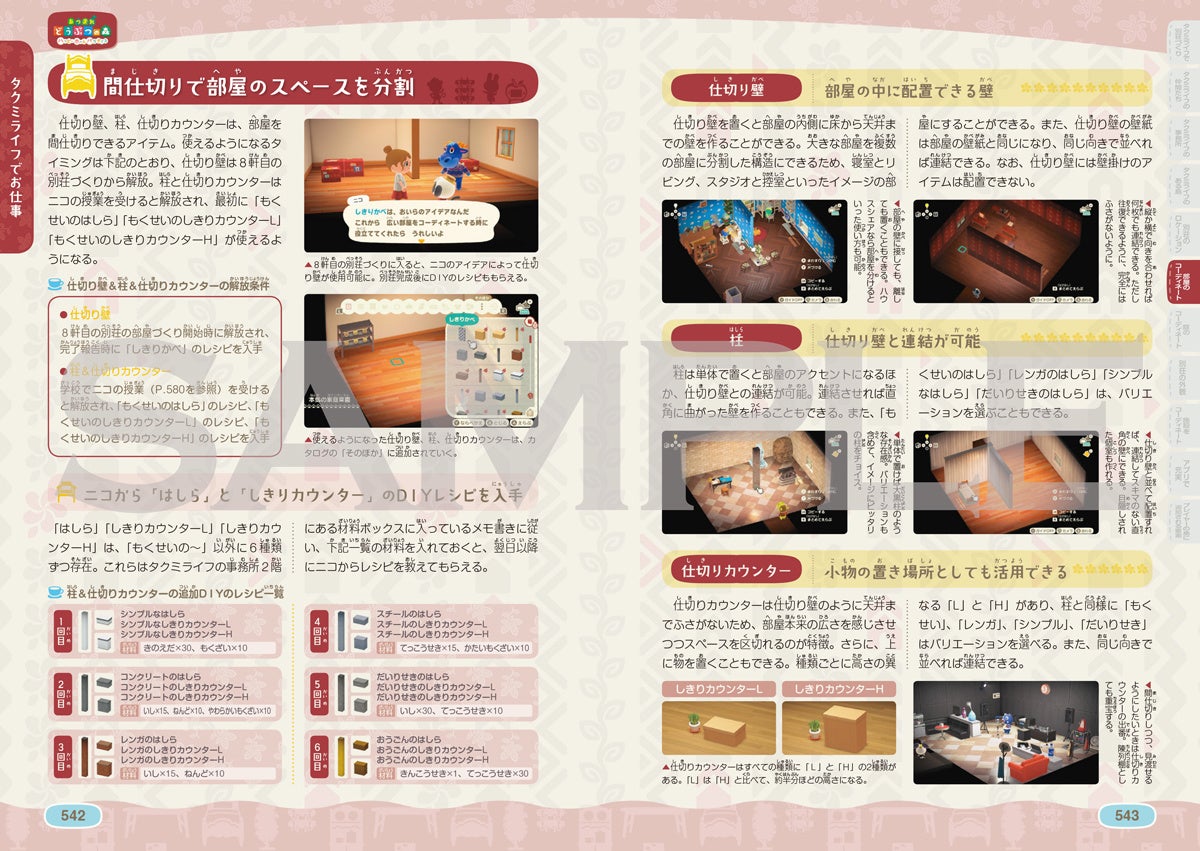 既存の情報に加え、DIYに新登場した料理やドリンクのレシピを収録。さらにカメラやマイデザインに追加された新機能や、ホームデザインをさらに充実させる、"はしら、しきりかべ、アクセントウォール"などの新システムもカンペキ解説!