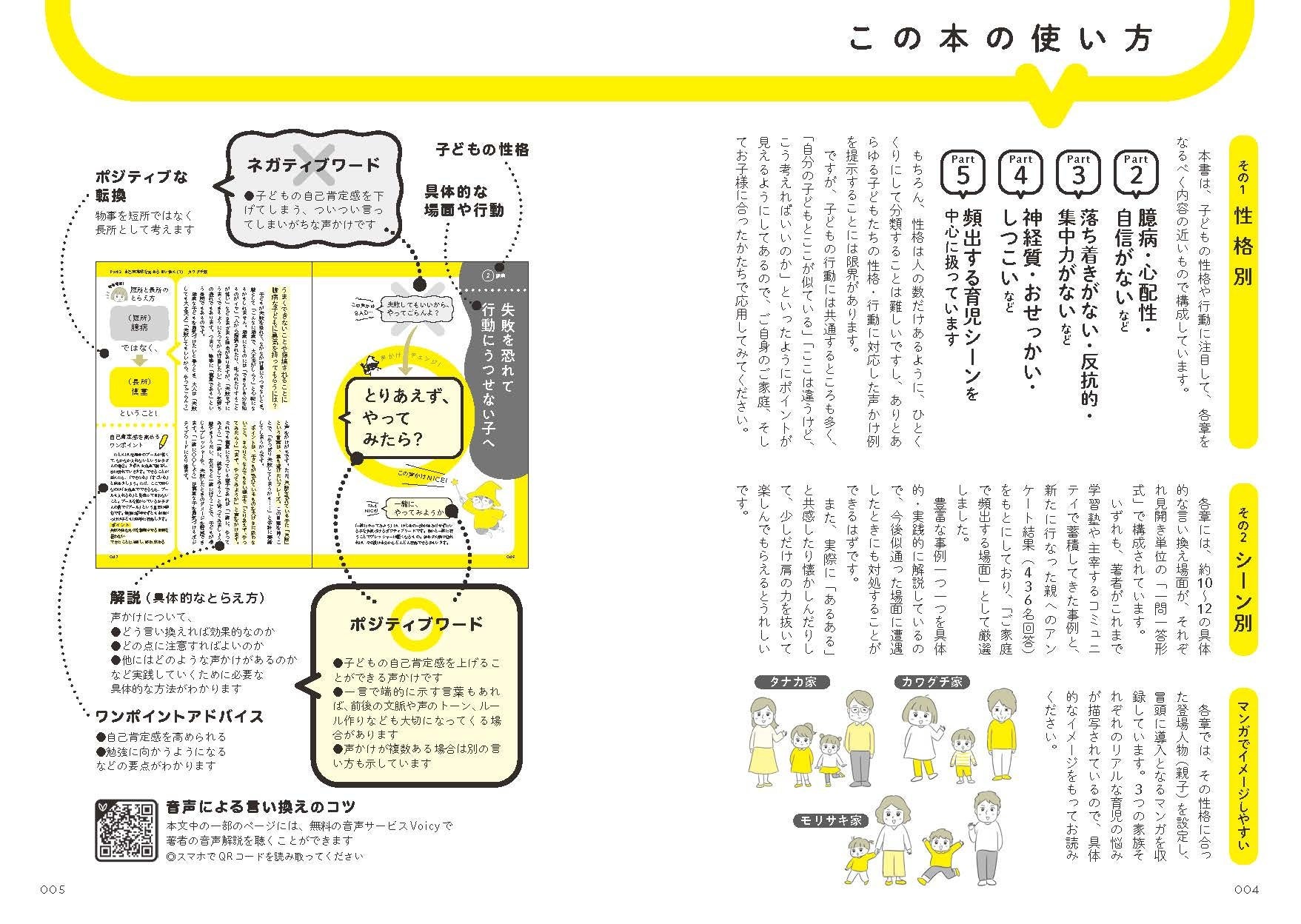 これまで5万人以上の生徒を指導し、全国でママカフェを主宰して育児の様々な悩みや相談に応えてきた教育家の石田勝紀氏が実際に行なってきたアドバイスとその成果をもとに、子どもへの適切な声かけを「場面別」「性格別」にわかりやすくまとめています。