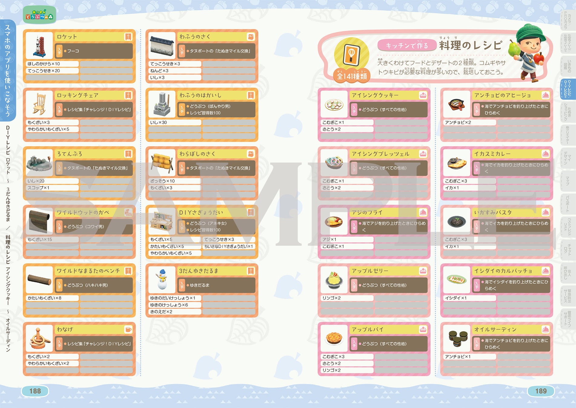無料アップデートで料理が作れるようになり、新デザインの柵の作成も可能に。必要な材料が一目でわかるすべての料理と柵のレシピに加え、新しく追加されたアイテムのレシピも合わせてカンペキ公開!