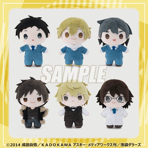 商品は、竜ヶ峰帝人、紀田正臣、黒沼青葉、折原臨也、平和島静雄、岸谷新羅のぬいぐるみや、ぬいぐるみに着せて使える動物のポンチョ・着ぐるみ、お出かけのとき使えるポーチとなります。思わずもふもふしたくなる可愛いキャラクターたちのぬいぐるみや着ぐるみをぜひGETしてください!