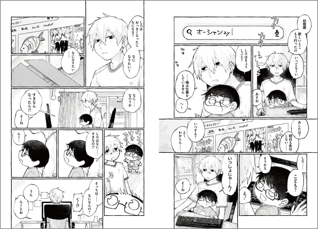『シロとくじら』は、ニートで自堕落な生活をしている“シロ”と、幼稚園が変わることになりシロ家にやってきた甥っ子“くじら”の日常を描いた物語。
