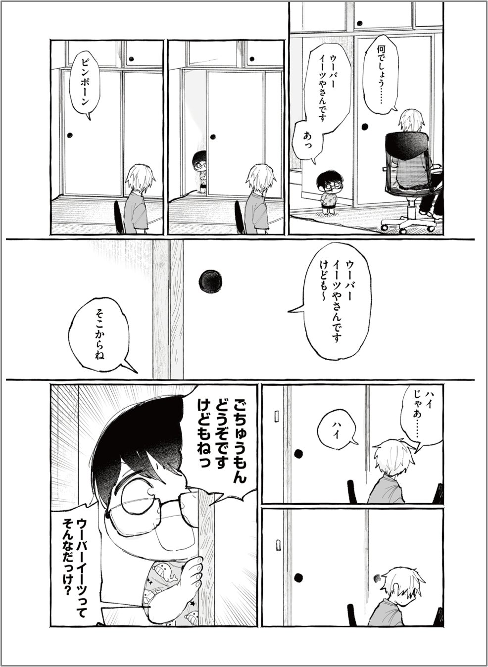 ▼ウーバーイーツ屋さんごっこをしたり…(3話より)