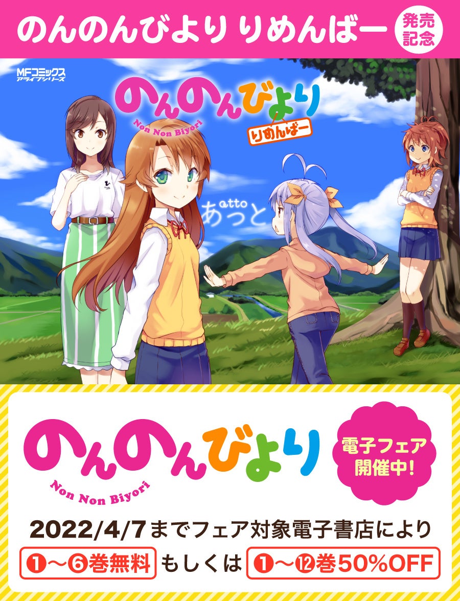 『のんのんびより りめんばー』の発売を記念して、一部電子書店にて、『のんのんびより』の電子割引フェアを実施中♪