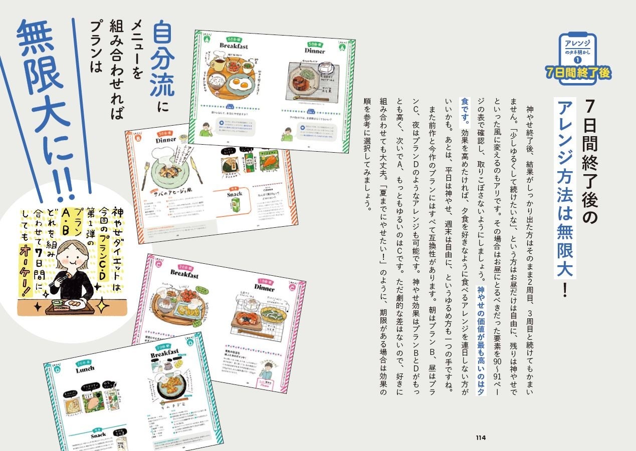 そのシリーズ累計10万部突破の神やせ7日間ダイエットシリーズ第2弾となる『もっと!神やせ7日間ダイエット 食べて食欲リセット、運動なしでやせる!』が、現在好評発売中です。