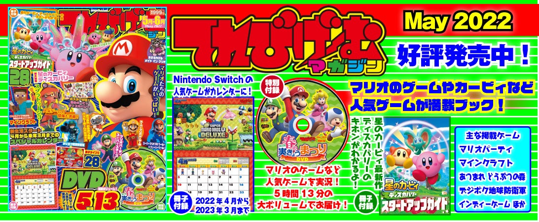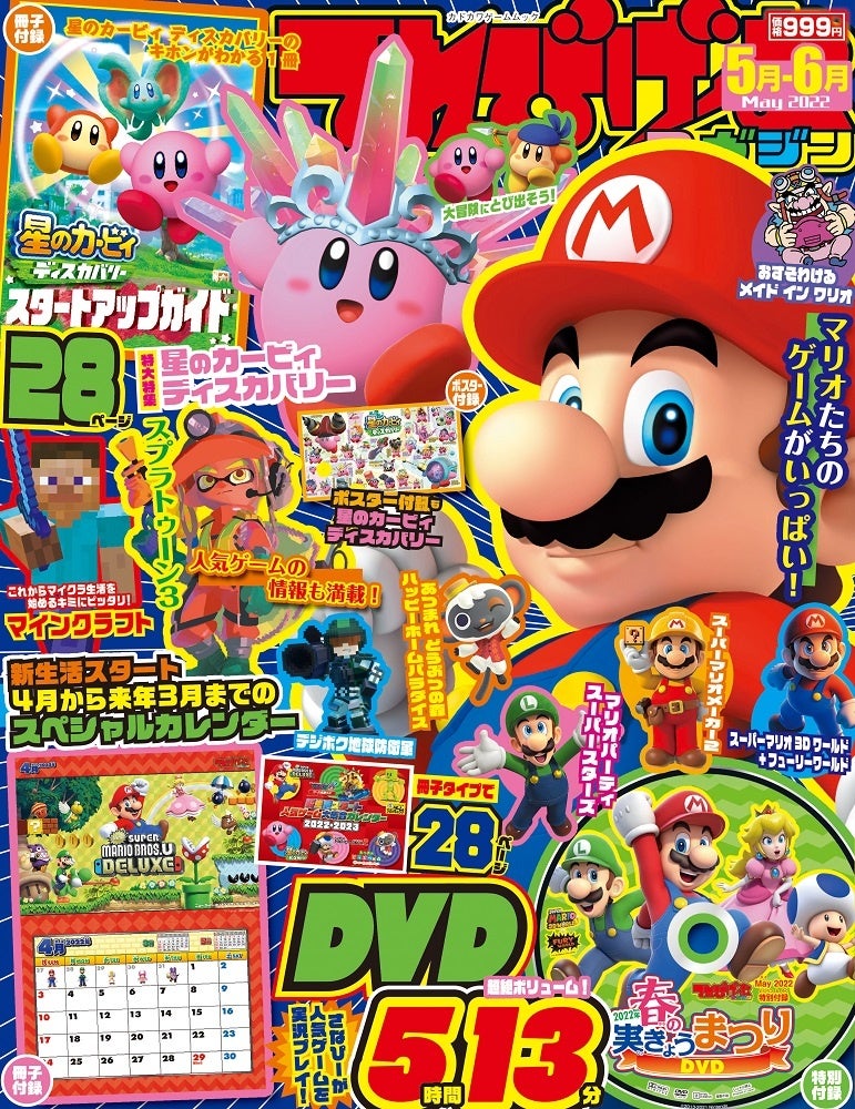 今号のゲーム実況DVDは「星のカービィ ディスカバリー」も収録。編集部員のさなぴーがマリオのゲームや「マインクラフト」など、人気ゲームの遊び方・楽しみ方を実況解説するDVD付録の最新版です。