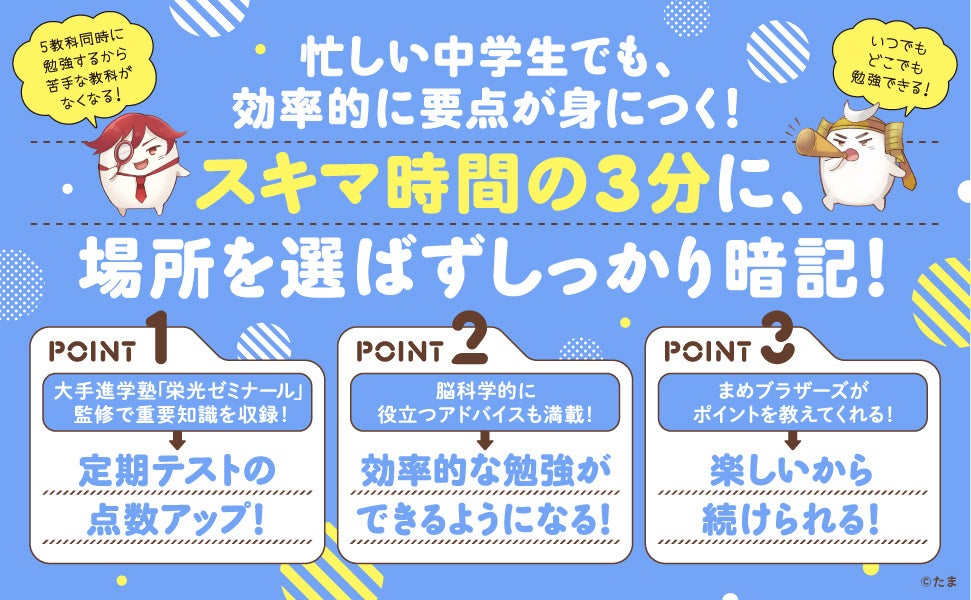 可愛いまめキャラたちが、大切な学習ポイントを説明します。勉強が嫌いな人でも、楽しく読める工夫がたっぷり。