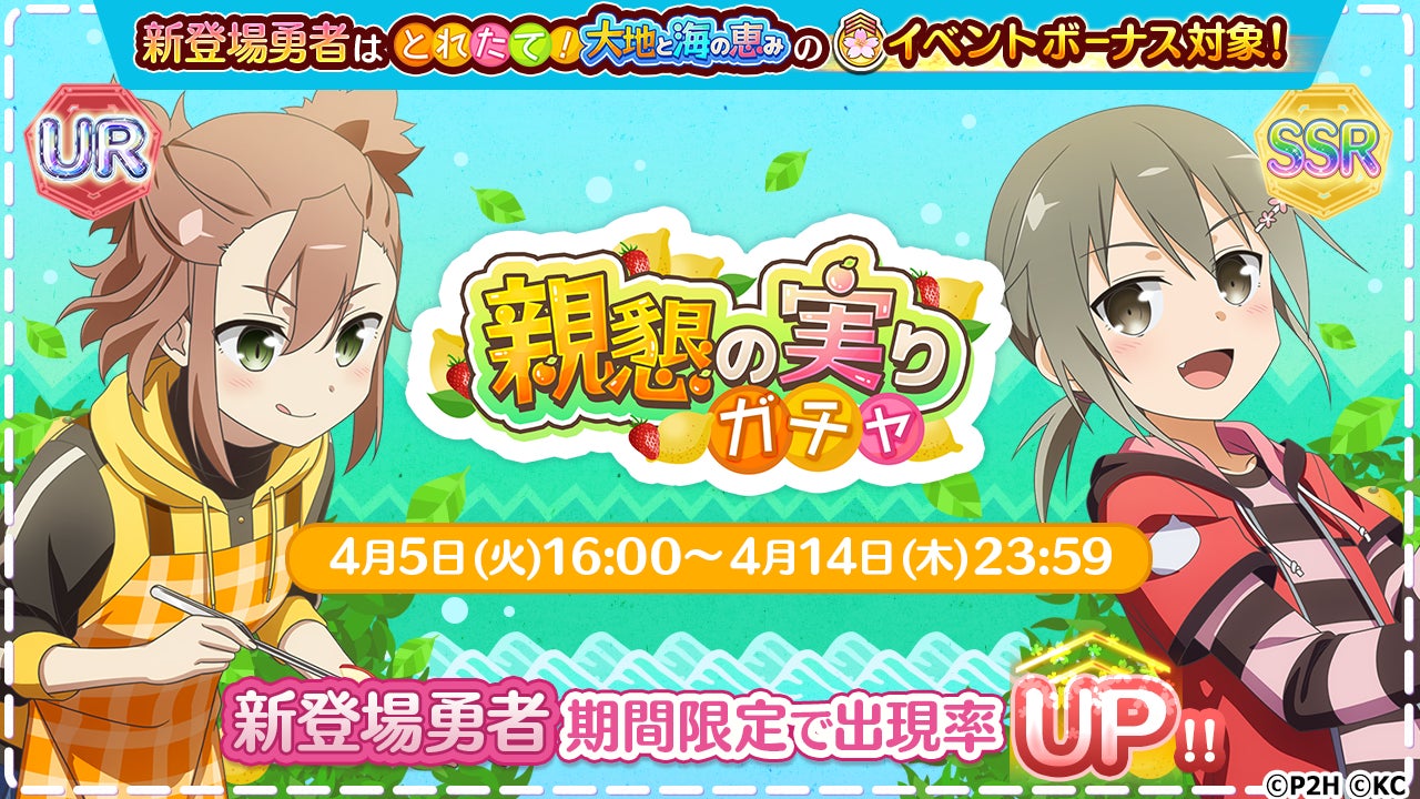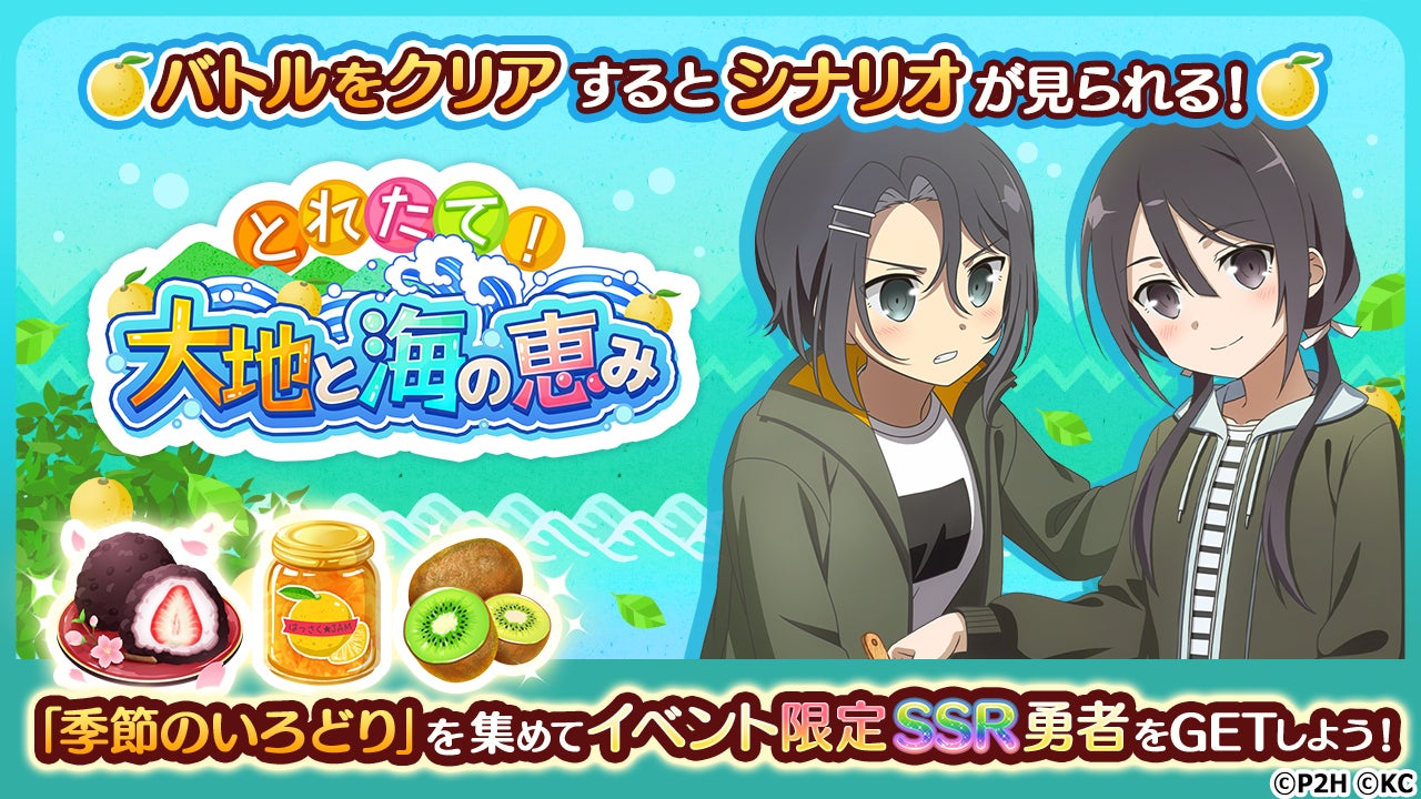 新規勇者達を編成し、同時開催中の「とれたて!大地と海の恵み」に挑戦すると、季節のいろどりが獲得しやすくなっています。