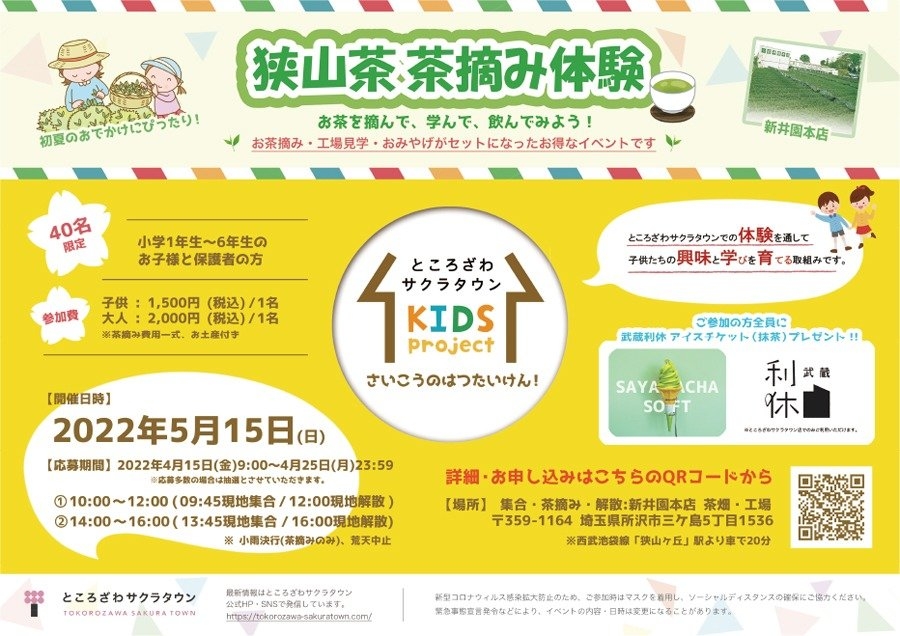 そんな「狭山茶」の茶摘みを、体験してみませんか? ⼟地の⾹りと、季節の⾹りを楽しみながら、2022年初夏の思い出を一緒に作りましょう。