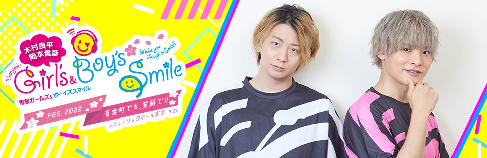 「木村良平・岡本信彦の電撃Girl‘s&Boy’sSmile」ニコニコチャンネル開設1周年を記念して、4月24日(日)にファン感謝イベント「『木村良平・岡本信彦の電撃Girl‘s&Boy’sSmile』FES.2022 ~有楽町でも、笑顔で!!~」をヒューリックホール東京(有楽町)にて開催します。