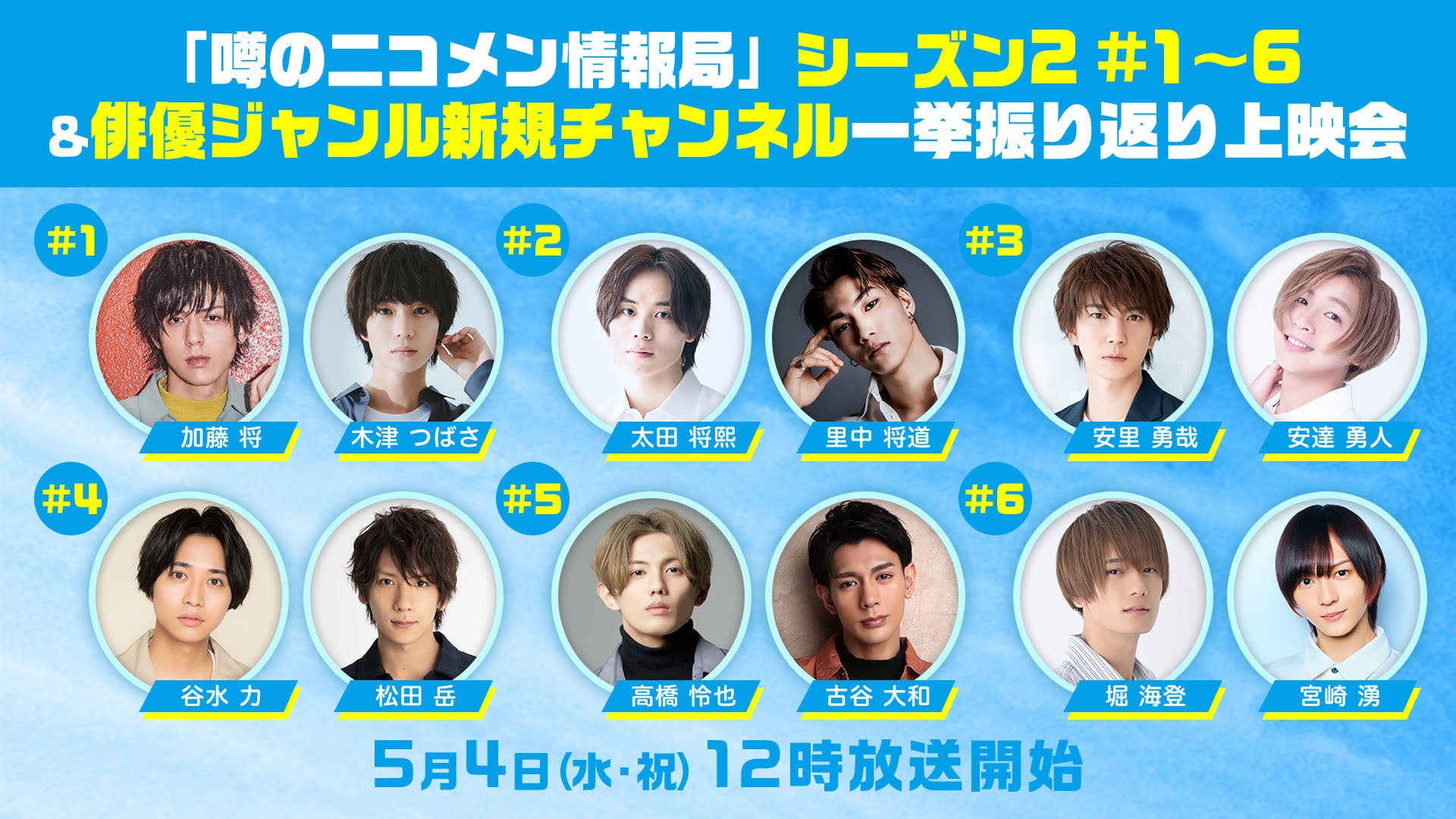 「噂のニコメン情報局」シーズン2 #1~6&俳優新規チャンネル 一挙振り返り上映会放送日時 2022年5月4日(祝・水)おひる12時より放送開始!番組視聴URL https://live.nicovideo.jp/watch/lv336683061