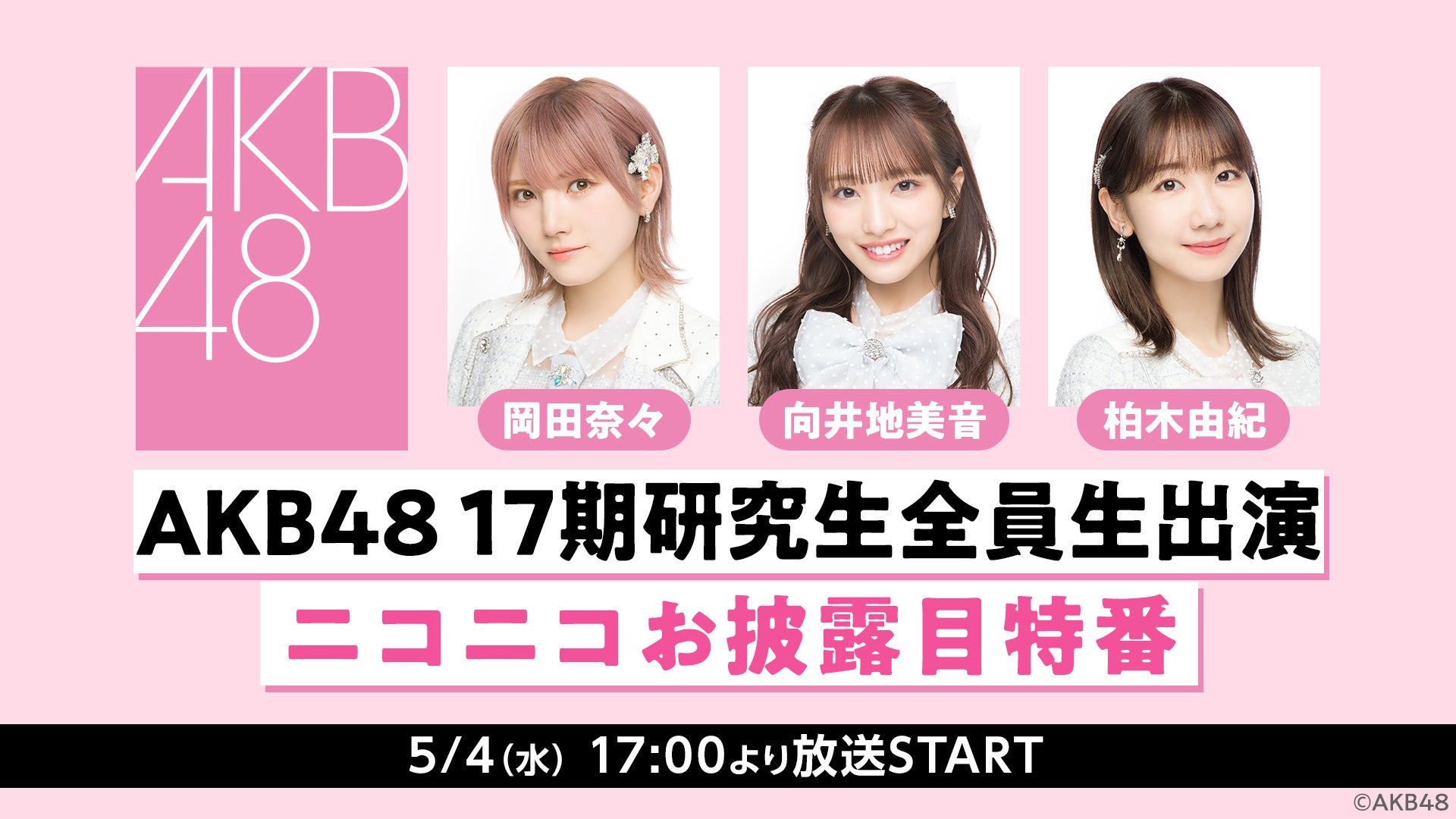そして、5月4日(水・祝)17時からはAKB48の17期研究生のお披露目番組を生配信!