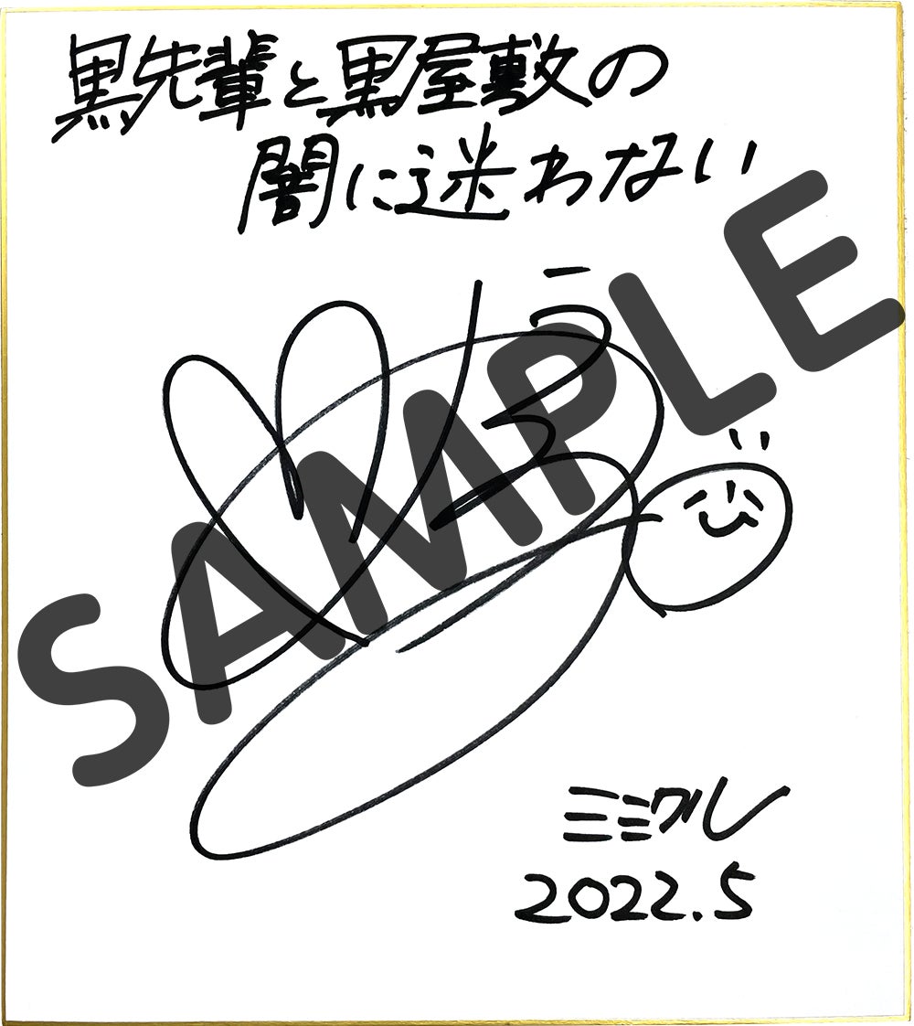 対象期間中に『ASMRボイスドラマ 黒先輩と黒屋敷の闇に迷わない』をご購入いただき、プラットフォーム内のプレゼントキャンペーンページにてエントリーされたお客様の中から、抽選で5名様に「松井恵理子さんの直筆サイン色紙」をプレゼントいたします。
