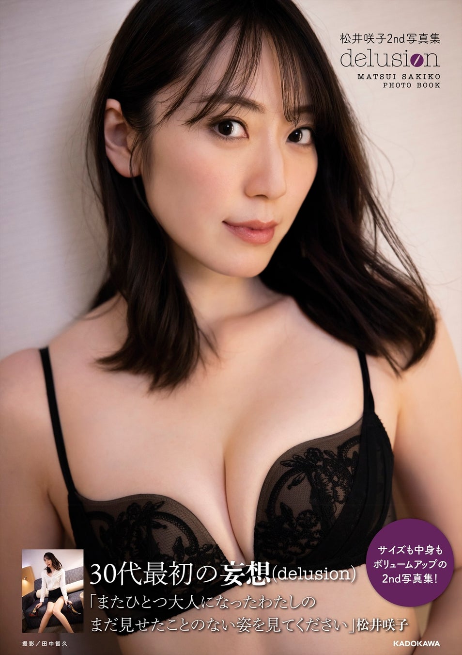 「またひとつ大人になったわたしのまだ見せたことのない姿を見てください」とコメントする松井咲子の「30代最初の妄想」をテーマにした大人の魅力全開の写真集。