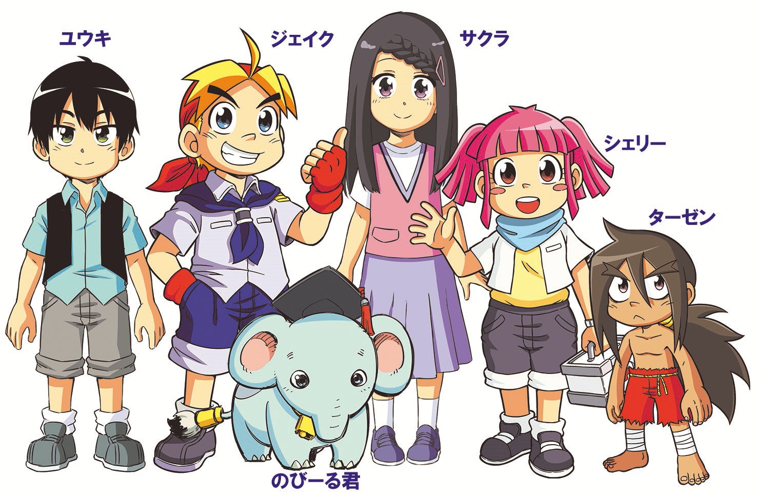 「どっちが強い!?」シリーズのキャラクターのジェイク・シェリー・ターゼンが日本で大活躍! オリジナルキャラクターのユウキ・サクラ、そして国語にくわしい地球外生命体のびーる君と、時には協力し、また時には競い合いながら、言葉を習得していきます。