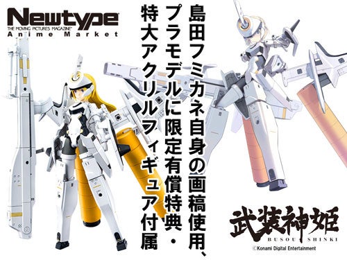 KADOKAWA発売の「『武装神姫』原案イラスト集 LEGENDS Vol.01 島田フミカネ」表紙用に島田フミカネ自身が描き下ろしたイラストを、Newtype Anime Market限定の有償特典「ビッグアクリルフィギュア」としてプラモデル「武装神姫」天使型アーンヴァルとセットで販売!