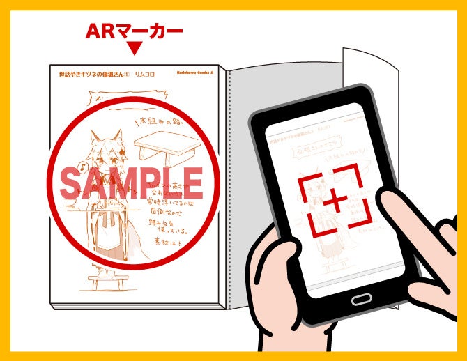 11巻の発売を記念して、仙狐さんやシロ、福田さんなどのキャラクターを用いたフォトフレームを配信中! 指定のARマーカー(「仙狐さん」コミックス1巻の本体表紙)をKADOKAWAアプリで読み取ると、特別ARフォトフレームが表示され、お好きな背景と一緒に撮影ができます。