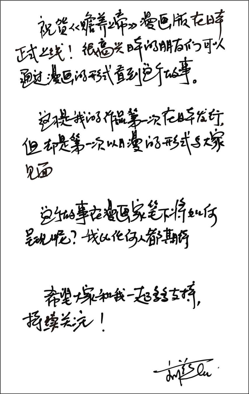 コミック化にあたり、原作者である劉慈欣氏よりメッセージが届いております。