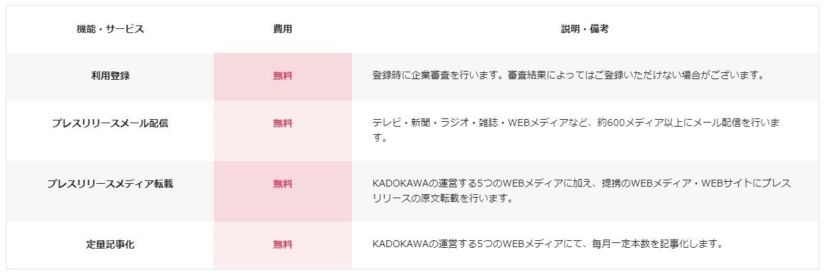 プレスリリース配信代行サービスに関わる登録料、利用料、配信料は完全に無料です。同サービス利用に伴う追加費用などもございません。