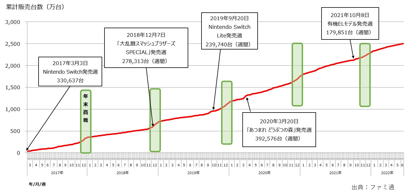 今後、「スプラトゥーン3」(任天堂/2022年9月9日発売予定)や「ポケットモンスター スカーレット・バイオレット」(ポケモン/2022年11月18日発売予定)といった人気シリーズの新作の発売も控えており、さらなる販売台数の伸びが期待されます。