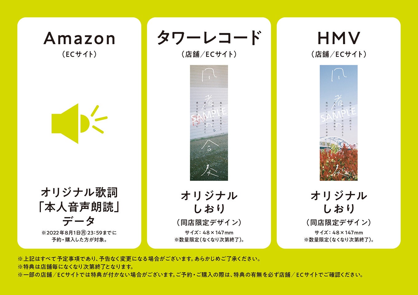 https://tower.jp/item/5425092③HMV 予約・購入特典「オリジナルしおり」(同店限定デザイン)