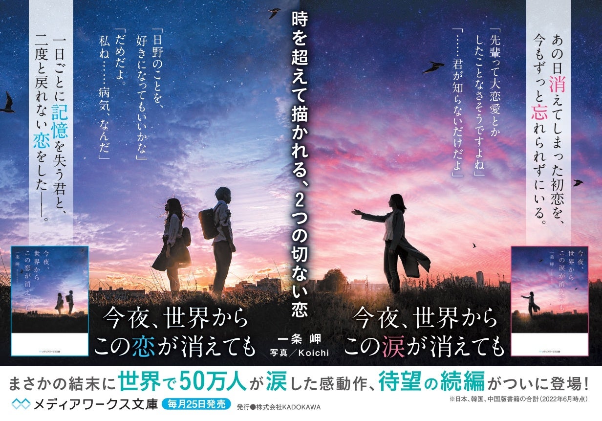 一条 岬新作小説『今夜、世界からこの涙が消えても』は、シリーズの映画ビジュアルを使用した帯を巻いて好評発売中!前作やその映画化作品と合わせて”もう一度泣ける”、涙と成長の物語です。