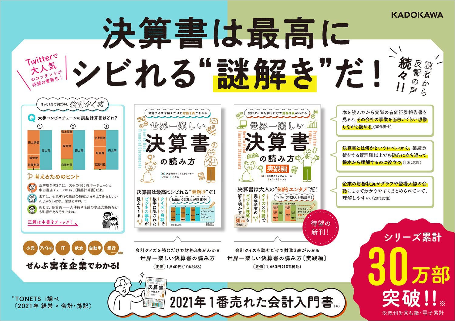 2020年刊行・『会計クイズを解くだけで財務3表がわかる 世界一楽しい決算書の読み方』は、実在企業のビジネス戦略をクイズ×キャラの会話で読み解く仕掛けが「本当にわかりやすい」と好評を博し、会計本として異例の大ヒット。