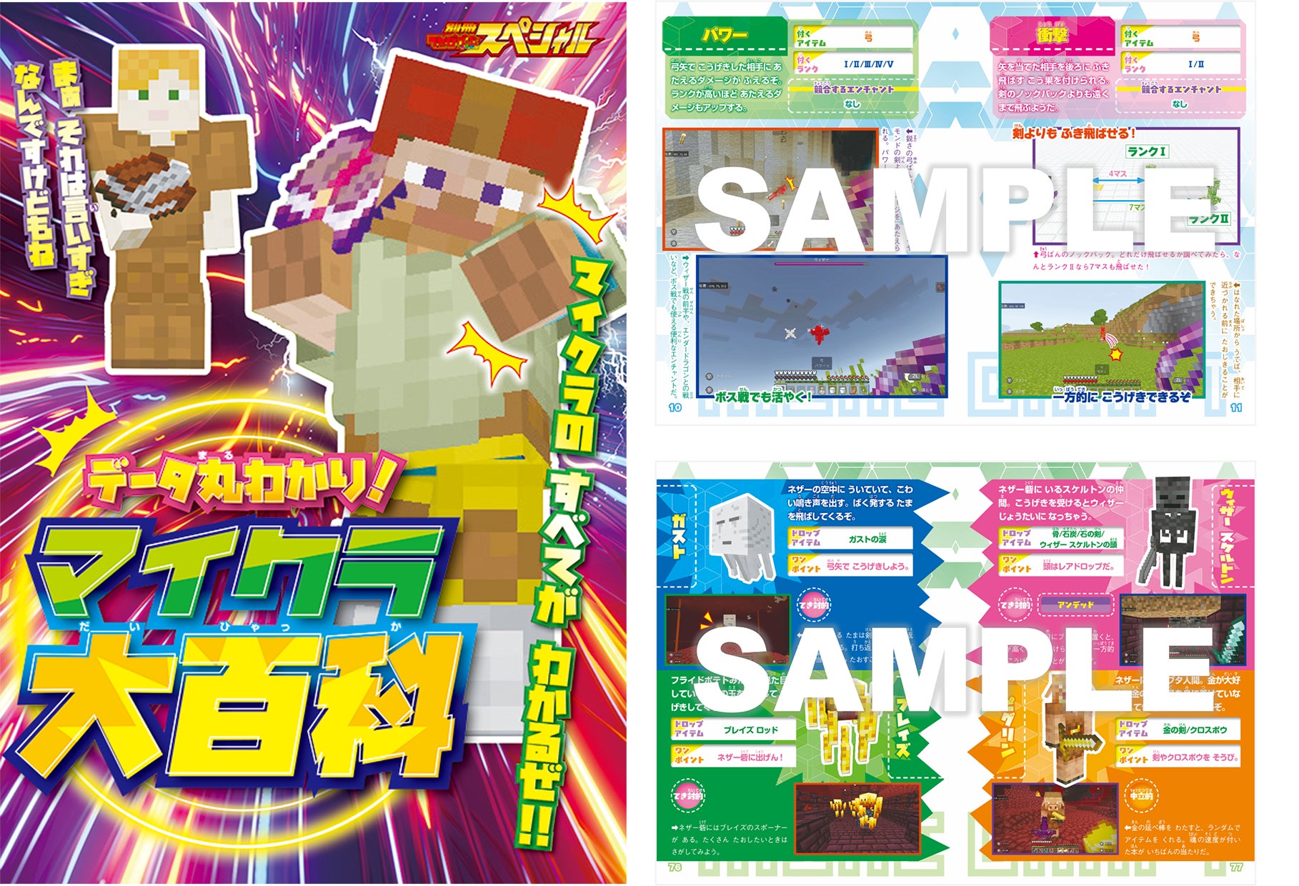 マインクラフト内のエンチャント、ポーション、敵対的mob、中立的mob、友好的mobなど様々なデータが確認できる大百科。君のマイクラ生活が充実すること間違いなしの付録冊子! |