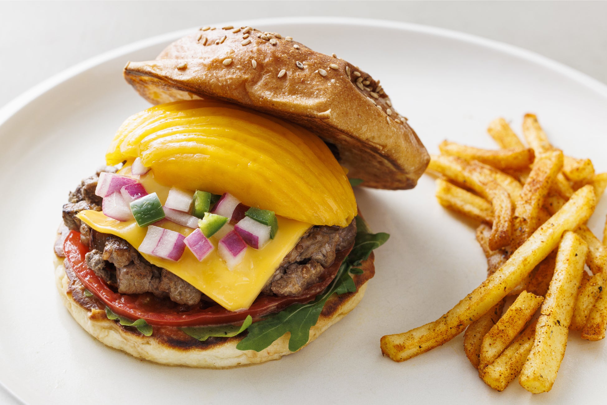 果汁×肉汁 宮崎マンゴー “GENKAI” サルサバーガー ケイジャンポテト添え